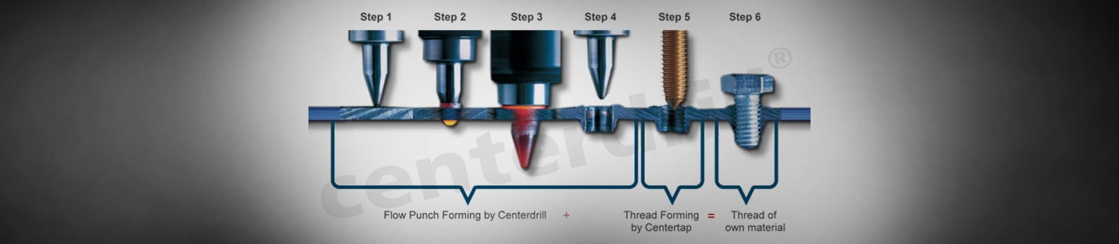 The flowdrilling process is also known as Centerdrill process, friction drilling, flow forming, thermal drilling process or form drilling.