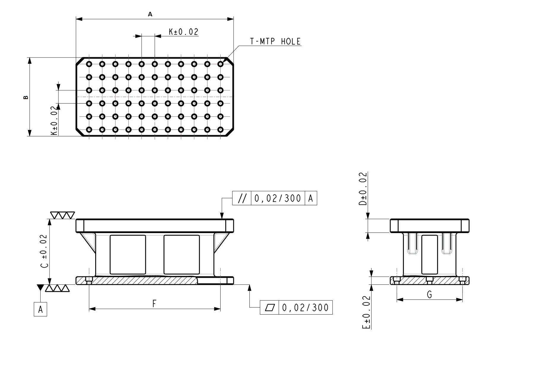 • MTP Hole Spacing: 50± 0.02