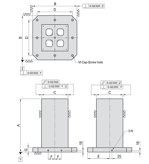 | Model No. | A | B | C | D | E | F | G | M | N | Mounting Holes | Weight in kg | |